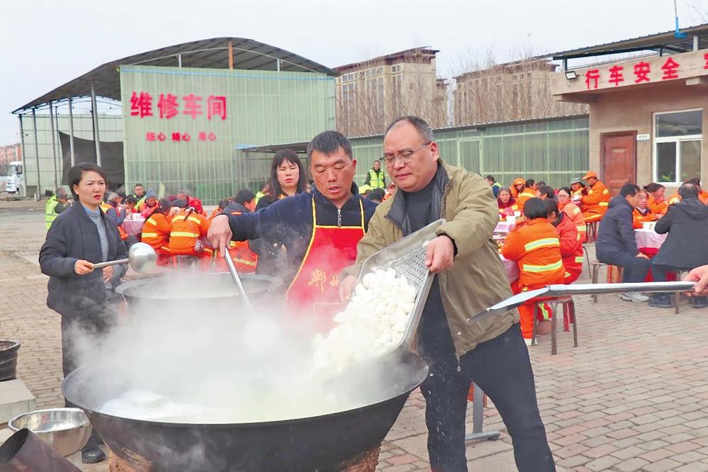 12月20日,在城運環(huán)衛(wèi)清運公司大院里,濟祥城運集團與城運環(huán)衛(wèi)工會聯(lián)合舉行“情暖冬至,心系環(huán)衛(wèi)”活動。記者 任蕊蕊 通訊員 寧大偉 攝